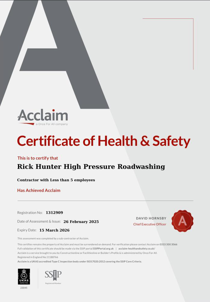 Safe and effective cleaning for tarmac, concrete and block surfaces